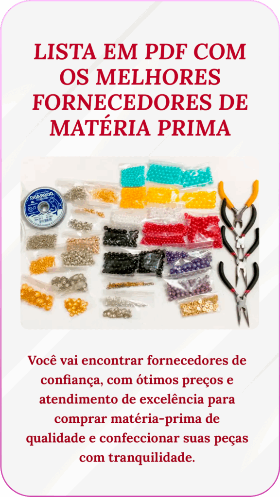 Com o Curso de Artesanato Joias dos Orixás, você aprende a confeccionar joias espirituais belíssimas e cheias de propósito, mesmo que nunca tenha feito bijuterias antes. Aqui, você vai aprender do zero, com acompanhamento e um passo a passo claro, acessível e acolhedor.